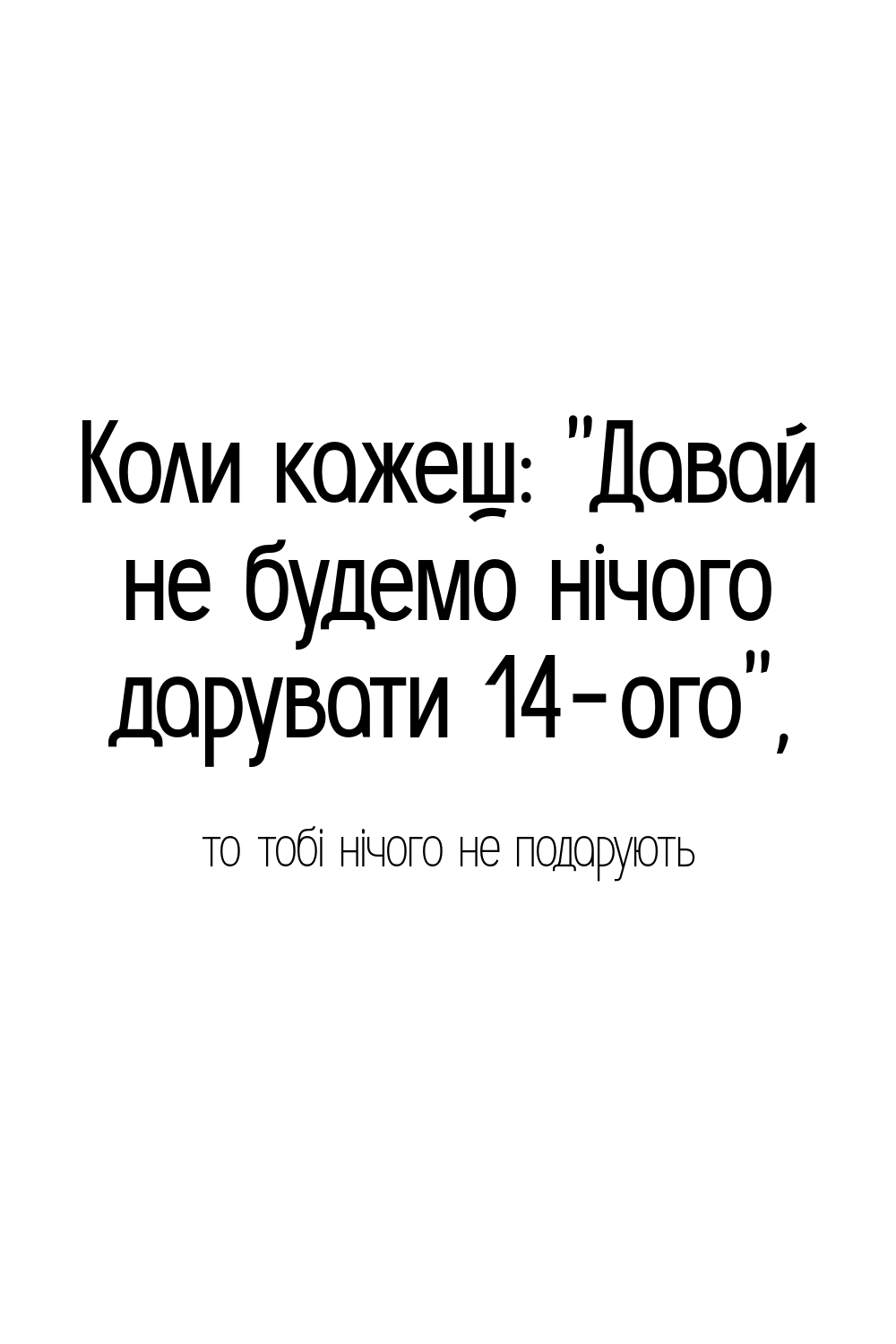 Коли кажеш: "Давай не будемо нічого дарувати 14-ого",