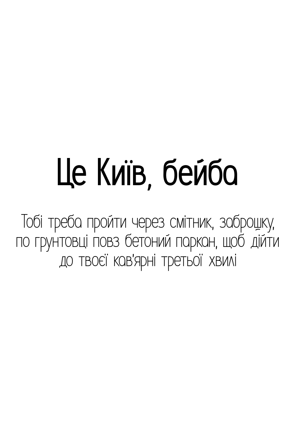 Тобі треба пройти через смітник, заброшку, по грунтовці повз бетоний паркан, щоб дійти до твоєї кав'ярні третьої хвилі